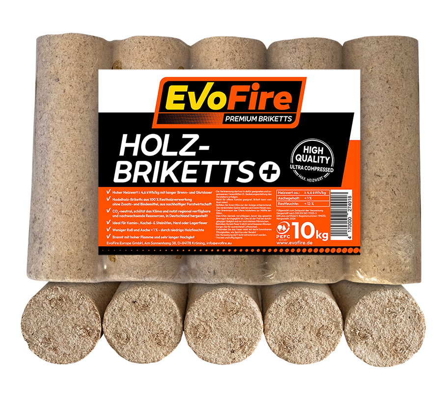 Gute Brennstoffe schonen Brenner, Kessel sowie Kamin und haben einen hohen Heizwert. Damit gehören EvoFire Premium Briketts und Pellets zu den besten am Markt.